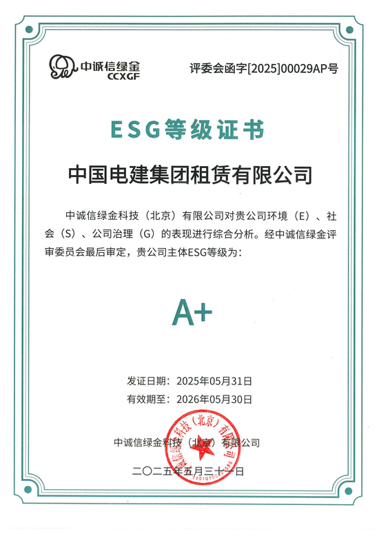 近日,公司再次荣获中诚信绿金科技(北京)有限公司2025年度ESG评级“A+”评价,彰显了在绿色金融与责任经营方面的卓越表现。